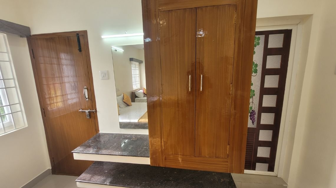 The attached bathroom is equipped with modern amenities for a refreshing experience, while the thoughtfully designed interiors combine style and functionality. Whether you’re unwinding after a day of exploration or simply enjoying a quiet retreat, every element of this room is curated to provide unmatched comfort, privacy, and a memorable stay at our resort