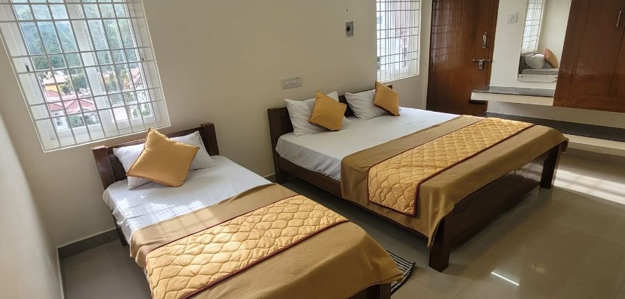 The attached bathroom is equipped with modern amenities for a refreshing experience, while the thoughtfully designed interiors combine style and functionality. Whether you’re unwinding after a day of exploration or simply enjoying a quiet retreat, every element of this room is curated to provide unmatched comfort, privacy, and a memorable stay at our resort